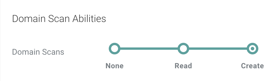 4. Desplázate hasta la sección "Domain Scan Abilities" y establece el permiso en "Create" (Crear).