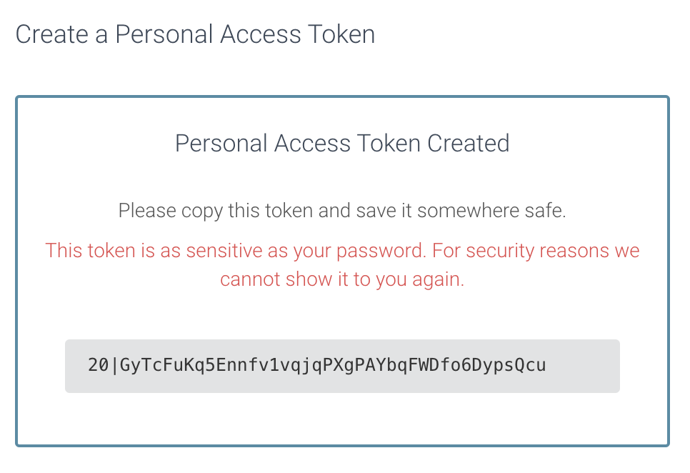 6. Se mostrará tu Personal Access Token. Asegúrate de copiarlo y guardarlo en un lugar seguro, como tu gestor de contraseñas.