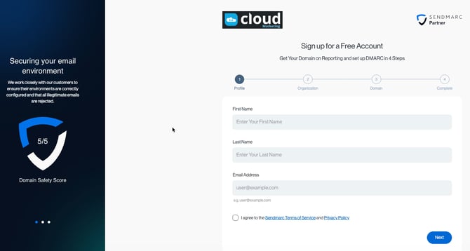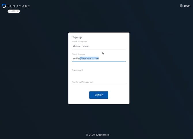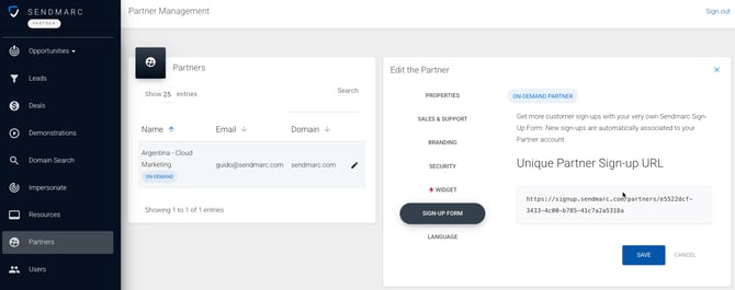 - En Sign-Up Form puedes obtener una URL para que tus clientes se registren en Sendmarc bajo tu cuenta de socio de manera automática.