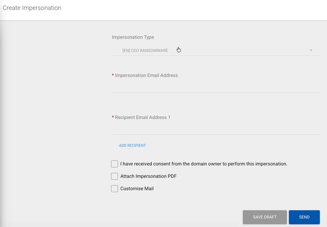 En la sección Impersonation puedes lanzar suplantaciones controladas de correo electrónico.