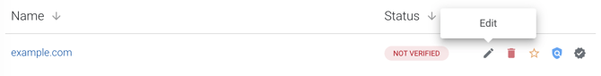 - Click on the domain you wish to configure and then click Edit. Or click the Pencil Icon of the domain you wish to edit.